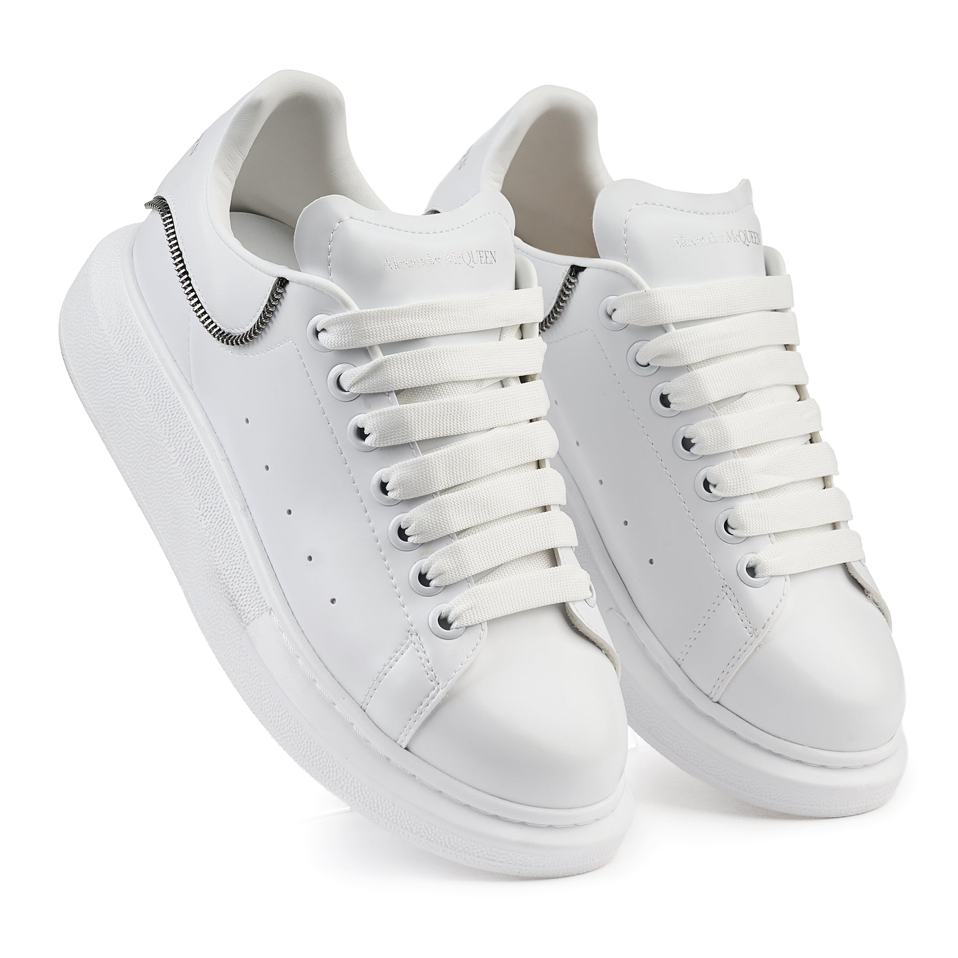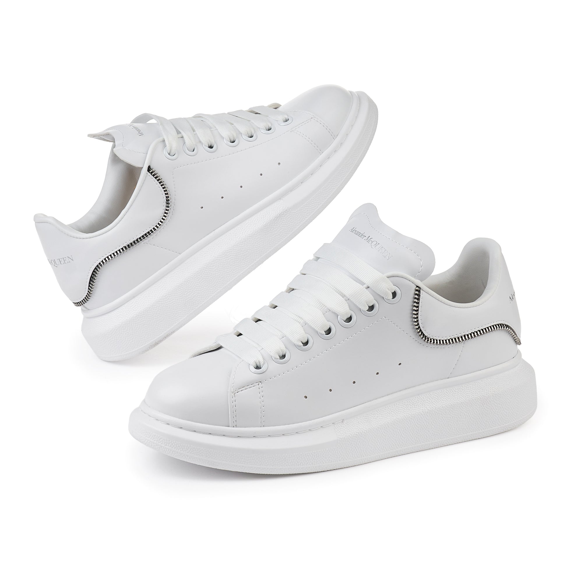 ✨ Accesorii: Șireturi late albe, logo „Alexander McQueen” inscripționat pe limbă și călcâi