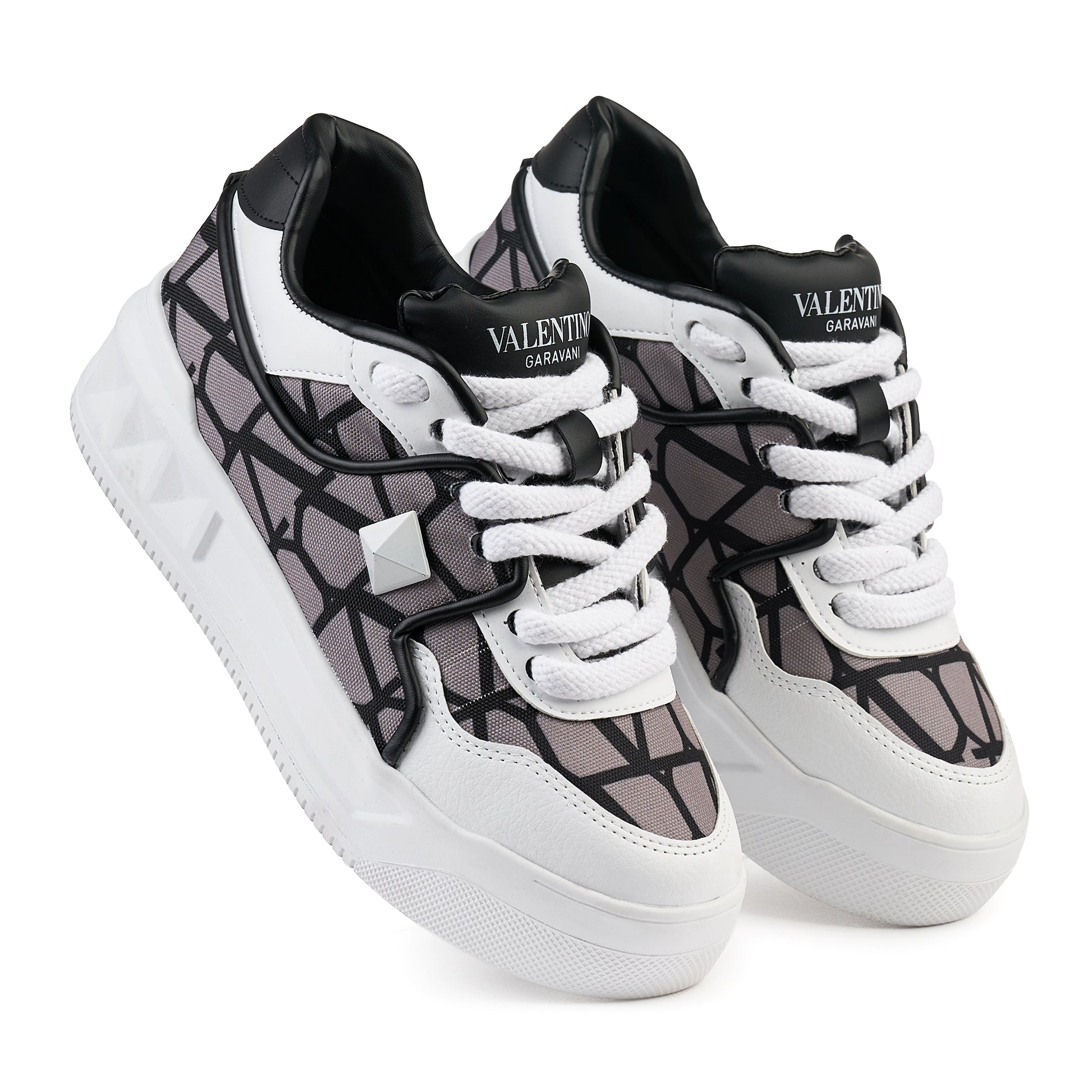 ✨ Accesorii: 2 nituri piramidale albe pe laterale și șireturi groase albe